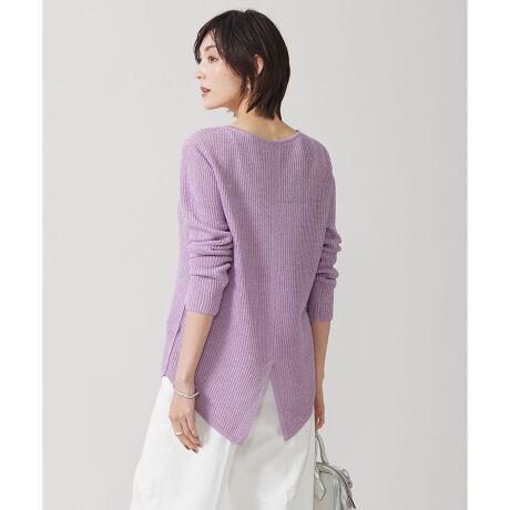 ■デザイン上品な凹凸目が高級感溢れるミドルゲージの畦編みニット。素材の持つツヤと落ち感で、カジュアルになりすぎず洗練された印象に。ややゆったりシルエットながら、細見えする様にサイジングに拘りました。シャツテールの様なヘムラインとバックベントで軽やかな印象に。さりげない編地切替えも拘りポイントです。ヒップが隠れるレングスで、どんなボトムとも相性良く着ていただけます。
