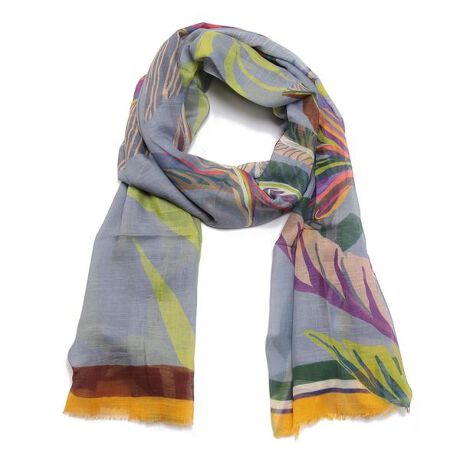 シアー感のあるシルクをブレンドしたしなやかなテキスタイルに、ちょっぴりトロピカルな雰囲気漂うボタニカルプリントを浮かべたストール。鮮やかな配色がパッと目を引き、スタイリングをシーズンライクに彩ります。 ※定価(税込)は、2024年6月28日のセール開始前の店舗における販売価格です。