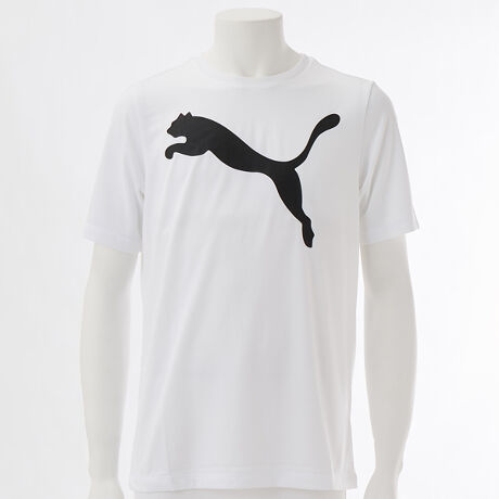 フロントの大きなプーマキャットが視線を引きつけるACTIVEビッグロゴ半袖Tシャツです。ポリエステル100%のため、アクティブシーンからデイリースタイルまでマルチに活用できる1枚です。