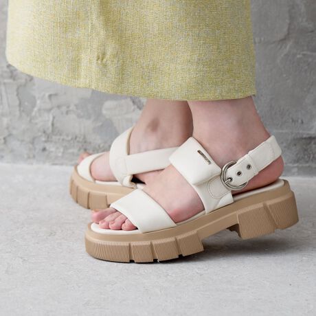 存在感たっぷりの大人厚底ソールで仕上げた、パデットサンダル。