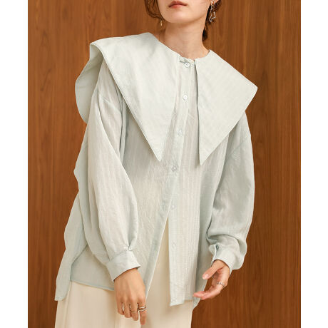 大注目のセーラーカラーブラウスが今年も登場しました!着こなしのアクセントになるビッグカラーはデコルテ周りの華奢見えを叶え、同時にトレンド感を引き立てます。リラックス感のある適度にオーバーめのサイジングがこなれた印象に。透け感のあるストライプ状の織柄が春のムードを漂わせます。後ろ姿まで抜かりなく大人可愛い雰囲気を楽しめる1枚です。