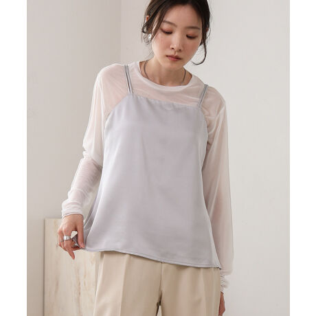 シアーシャツやメッシュニットのインナーに仕込んで、よりレディらしさが際立つ雰囲気に。カップ付きだからこそ1枚でさらっとお召し頂け、トレンドのサテンパンツとセットアップ風で合わせると 大人のこなれ感溢れる着こなしを楽しめます。またカップを外してビスチェ風にレイヤードして着こなしていただける1着です。