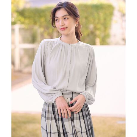 デザイン・襟から肩にかけてのギャザーが上品なブラウス