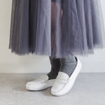 ローファーのきちんと感はそのままに、滑りにくく柔軟なラバーソールや、足当たりの良いレザー、特徴的なつま先の縫い目など、モカシンらしさも兼ね備えています。