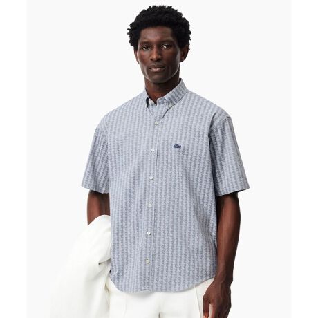 モノグラム柄 プリントジャカードシャンブレーオックスフォードシャツ