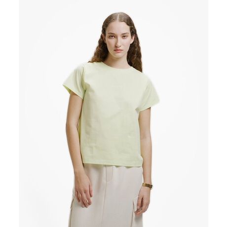 [型番:TF006J-99]コンパクトデザインのエッセンシャルなクルーネックTシャツ・100%コットン仕立てのシングルジャージ素材・スマートな身幅とコンパクトなスリーブ・前身頃の中央にミニマルサイズのブランドネームロゴ・首後ろにワニロゴパッチ・フィット感:Regular FitRegular Fit