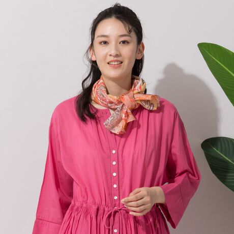 シンプルなコーディネートに1点投入するだけで、一気に華やかに仕上がるストールです。
