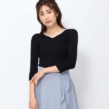 伸縮性のあるリブ素材で仕立てられ、程よいフィット感を演出します。