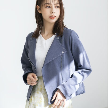 【春夏新作】シャンブレーデニムライダースジャケット