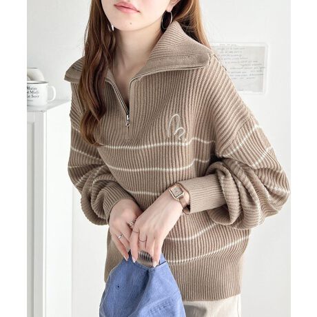 パネルボーダーにロゴ刺繍入りのトレンド満載のハーフジップニット。