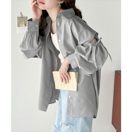 ルーズなシルエットと抜け感が大人カワイイ。肩開きリボンドロストシャツ