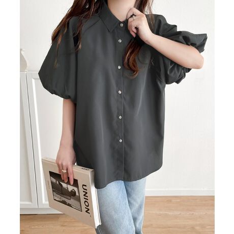 シルエットで差をつける。コットンライクバルーンスリーブシャツブラウス