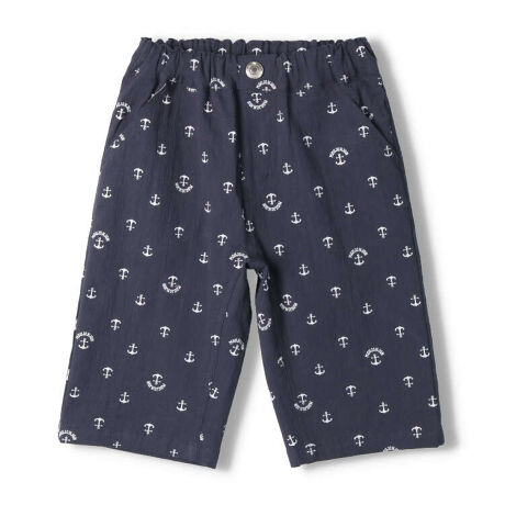 シワ感がお洒落な綿ワッシャーストレッチ素材の6分丈ハーフパンツ。アンカー総柄のプリントが、夏に着たくなるマリンなイメージです!セーラーカラーのトップス合わせや、トリコロールカラーでまとめるマリンコーデがおすすめ♪【アイテム】シンプル ベーシック カジュアル お洒落 オシャレ かっこいい かわいい 可愛い 普段着 お外着 お外遊び着 デイリーウェア お出かけ着 ハーフパンツ 短パン 半パン 半ズボン ボトムス 子ども こども 男児 男の子 ボーイズ キッズ ベビーサイズ トドラーサイズ 幼稚園 保育園 小学校 通園 通学 小学生 2024年春夏物新作 丸高衣料 マリン いかり ホワイト 白色 コン ネイビー 紺色 ムージョンジョン