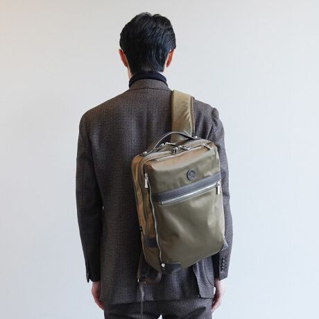 スクエアフォルムのスッキリとしたデザインで、A4サイズの書類やPCもすっきりと整理して収納することができるビジネスシーンでも活躍するリュックサック。