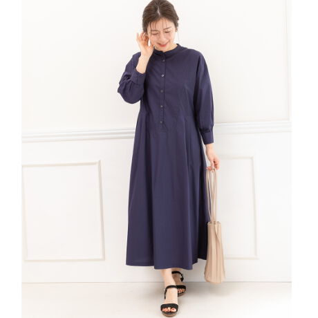 無地のバンドカラーワンピース。大人女性にぴったりのきれいめでちょっぴりカジュアルでエレガントなアイテム。