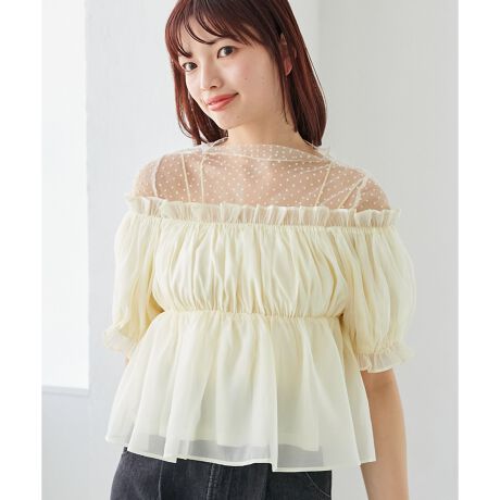 華やかなボリュームスリーブでフェミニンな要素を詰め込んだシアーブラウスセットアイテム