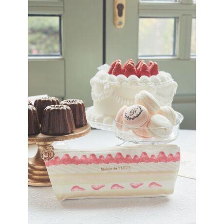 上品な甘さのクリームと苺たっぷりのショートケーキをプリントした横長ポーチ。<p>箔プリントのブランドロゴや、ファスナー引手にはオリジナルの「F」ロゴパーツを使用し、高級感があります。</p><p></p><p>スリムなフォルムで持ち運びもしやすく、学校やオフィスでも活躍してくれそう♪</p><p>バッグから取り出すたびにときめくデザインで、ギフトにもおすすめのアイテムです。