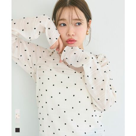 透け感のあるシアードット素材を使用したトップス。