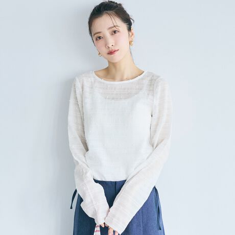 透け感のあるシアードット素材を使用したトップス。