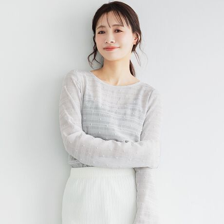 透け感のあるシアードット素材を使用したトップス。