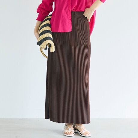タイト過ぎないIラインのキレイめプリーツスカート。
