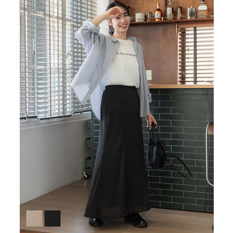 カジュアルにも使えるスカートなので、ロゴTシャツやスウェットとも好相性です◎