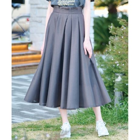 ほんのり透ける素材の軽やかさとドラマティックなボリューム感が女性らしく、春の着分を盛り上げるスカート。