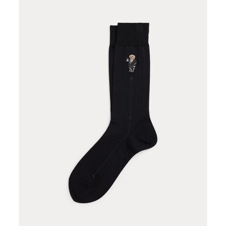 アイコニックなマスコットが華やかなアクセントを添えるウール混紡ソックス。ハイゲージで編み上げて、洗練された風合いを実現・リブカフス・左右のソックスの外側にPoloベアの刺繍・サイズ:25-27cm 【素材】・毛 65%、ナイロン 35%【生産国】日本