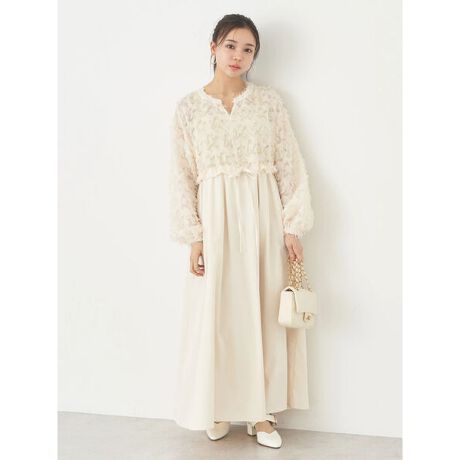 フリンジのようなシアージャガード切替が華やかな印象をプラスするワンピース。