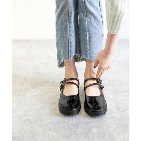ぽってりとしたシルエットに、細めのダブルストラップが印象的なストラップシューズ。