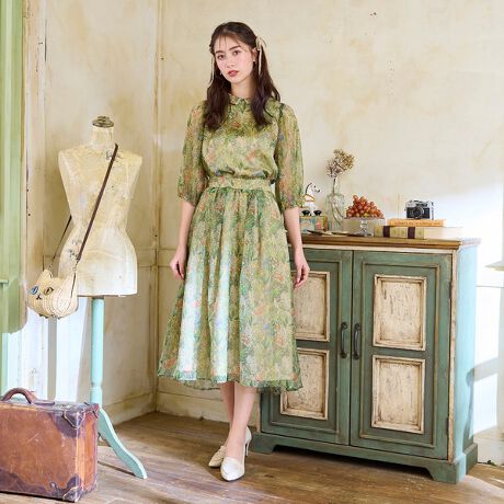同柄のブラウスと合わせてワンピース風に着こなすのも◎。
