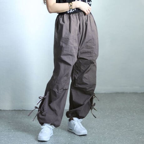 軽やかな素材を使用した、シーズンコーデにぴったりのカーゴパンツの登場です。サイドスリットでヘルシーな肌見せを演出し、小ぶりなリボンが愛らしさをプラス。裾も絞れる仕様なので気分で雰囲気をチェンジできるのが◎☆ウエストはゴム仕様となっているので、スッキリと見せつつもイージーな着用感が魅力☆股上も深くクロップド丈のトップスとの相性も抜群です。
