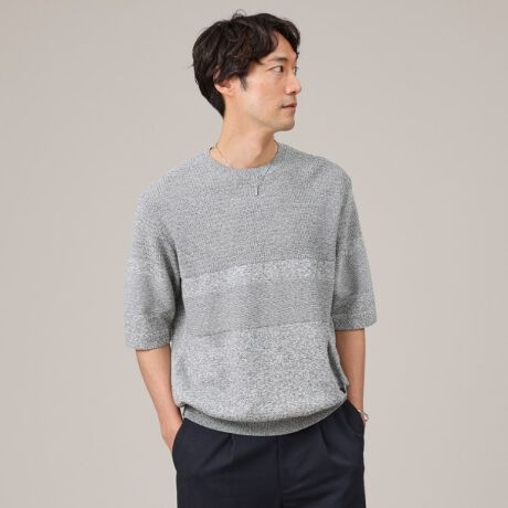 風合いを活かしたシンプルなディテール、編み柄変化でスタイリングに組み込みやすく、夏の着こなしの定番として活躍してくれる1枚。