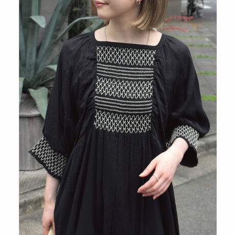 袖口とフロントに施した刺繍デザインがポイントのワンピース。