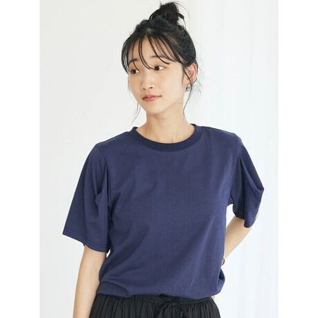 スリーブにあしらわれたタックが立体感を演出するTシャツ。