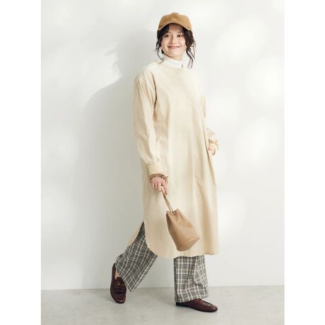 細畝(ほそうね)のコーデュロイで上品な印象に仕上げたリブ付きワンピース。