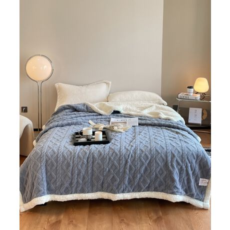 【100x150cm】ケーブル編み風大判サイズモコモコブランケット毛布