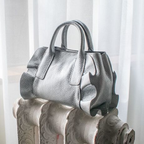 フリルデザインがフェミニンな印象のハンドバッグ。