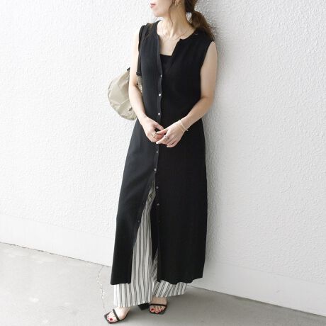 シンプルなノースリーブワンピース。
