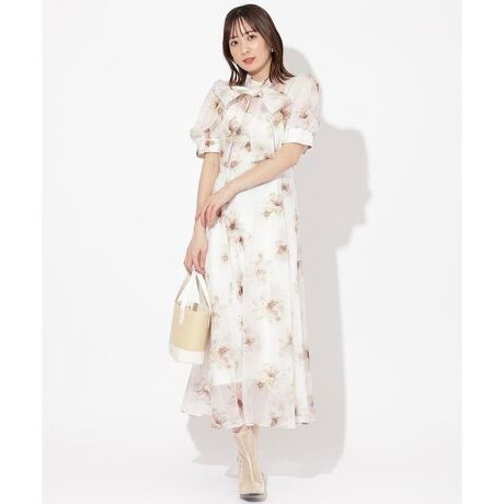 存在感のあるオリジナルフラワープリントがポイントのマーブルフラワーワンピース【Design】・WILLSELECTIONオリジナルのフラワープリントを施したワンピース。・水彩画のようなやさしい色味と程よいシアー感がやわらかい印象を与えてくれます◎・首元の大きなリボンが華やかなスウィート感をプラス♪・バックウエスト部分はシャーリング&レースアップ仕様なのでお好みに合わせてサイズ調節が可能!・ウエストから広がるフレアシルエットが動く度に軽やかに揺れ、女性らしさを引き立てます。・バックファスナー仕様。【Fabic】・さらっとしたシアー感のある、シワになりにくいポリエステル素材を使用。・ほどよいハリ感のあるインナーキャミソール付き。・ベージュ、ピンク、グリーンの3色展開となります。【Care】ドライクリーニング