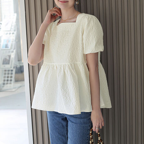 ペプラムブラウス スクエアネックトップス