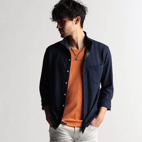 ウェーブシアー7分袖スタンドシャツ