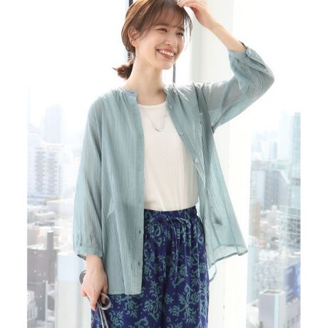 程よい透け感で清涼感があり、軽い着心地の綿シフォン素材のシャツ。