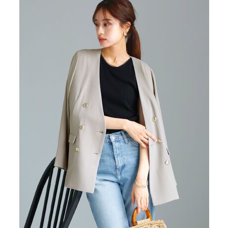 ・カラーレスジャケット&テーパードパンツセット [弊社品番:783326]