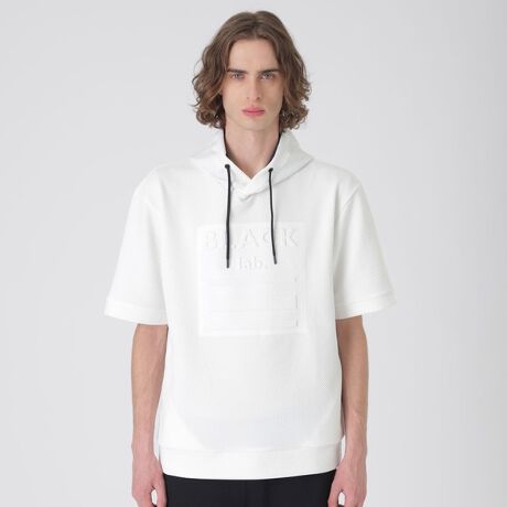 フロントに「BLACK lab.」のロゴをあしらった半袖フーディー。エンボス加工による凹凸のみで表現したロゴは程良い存在感があります。ややゆったりとしたリラックスシルエットで、夏のコーディネートの主役になるアイテムです。