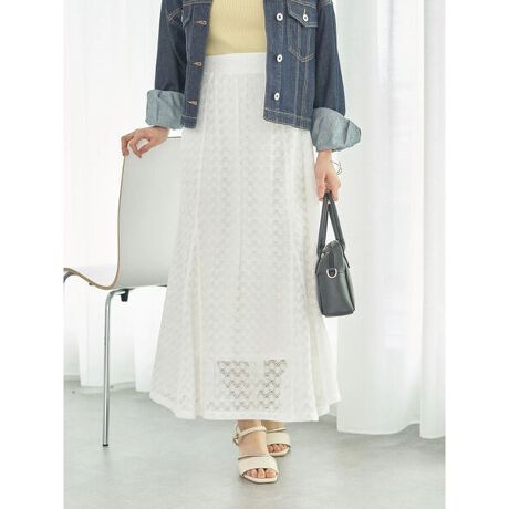 カットレースでエレガントな印象に仕上げたフレアスカート。