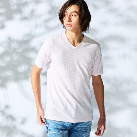 幾何学柄Vネック半袖プルオーバー