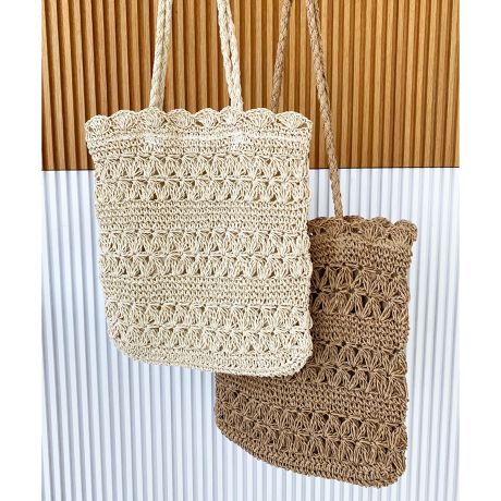 フラワー編みがナチュラルな風合いとシーズンムード高まるトートバッグ。