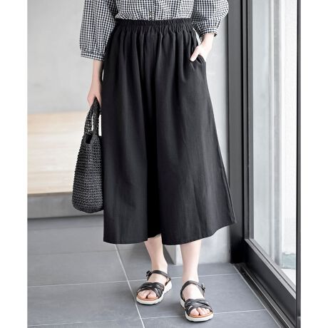 ゆるっとはけて肌にまとわりつかないリラクシーなガウチョパンツ。