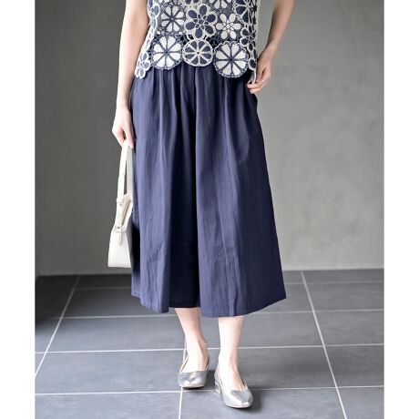 ゆるっとはけて肌にまとわりつかないリラクシーなガウチョパンツ。